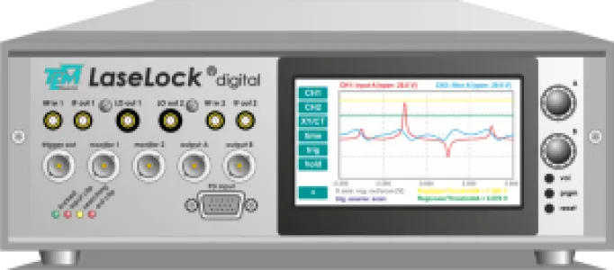 Stabilized lasers are sought-after components for many applications. By using LaseLock, laser drift can be almost completely eliminated and very narrow line widths can be generated with extreme stability. LaseLock measures and detects frequency changes of the laser and provides corresponding feedback signals so that these changes can be corrected and stabilized.